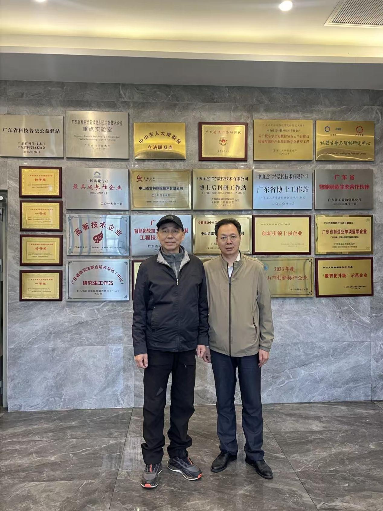 中山迈雷特数控技术有限公司成立于2012年,是专注于高端数控系统、智能装备及柔性制造解决方案的高新技术企业,构建了“数控系统+数控装备”双研发体系,拥有核心专利技术200余项,设立全国博士后科研工作站、广东省精密齿轮柔性制造装备企业重点实验室等7个省级以上研发平台,核心产品涵盖多轴联动数控系统、全齿形数控齿轮加工装备、智能深孔钻削设备等,广泛应用于汽车、航空航天、新能源等领域。公司董事长林守金、系统总工龚德明、技术负责人周永洪等领导热情接待了李伟光教授一行。李伟光教授首先介绍了智能制造学院学科发展和“3+1”产教融合工作坊的开展实施情况,为双方合作探索进一步的人才培养模式提供了思路。龚德明总工详细介绍了公司在数控装备研发、制造方面取得的成果,特别是在AI数控技术以及电机、驱动器等装备方面的探索与实践,并提出了机器人具身智能装配方面的研发合作意向。双方围绕智能数控装备模块化、多功能研发制造技术、产学研合作等方面展开了务实交流,并就未来共建实验室等合作方向进行了初步沟通。