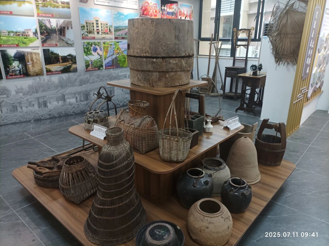 在太平村党群服务中心,村史馆以古朴砖瓦、原木展架搭配现代光影,化身 “村落史书”。馆内老照片、农耕器具等陈列,重现往昔岁月;图文展板与多媒体影像,梳理从清末太平圩到省级 “百千万工程” 典型村的蜕变历程,它留存着宗祠、醒狮文化记忆,也展示乡丰产业园等振兴成果,是村民的乡愁寄托和外界了解太平村的窗口。