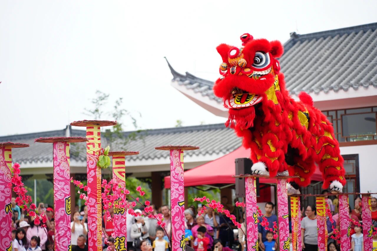 在太平村,醒狮文化是流淌在岁月长河里的文化瑰宝。醒狮扎作技艺代代相传,匠人们以竹篾编织骨架,用纱纸糊面,再精心勾勒五官色彩,让每头醒狮都独具神韵。这里的醒狮文化传承百年,村中老艺人手把手教导孩童扎马步、学狮艺,从基础步伐到高难度套路,形成了完整的传承链条。如今,太平村醒狮队不仅活跃在村内节庆活动,还走出村落参与文化展演,让太平村的醒狮文化在新时代绽放出别样光芒。